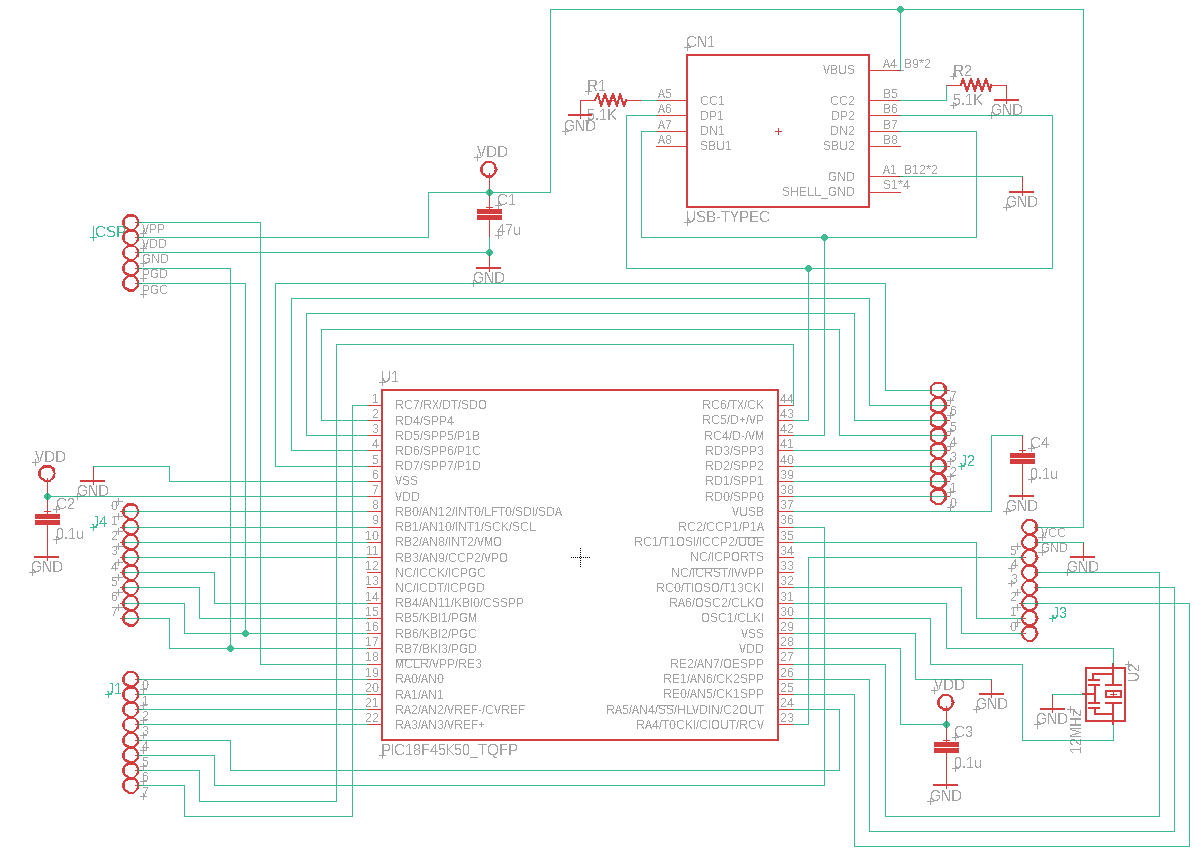 (2023/04/21) USB-TypeCにコネクタ変更、PIC18F45K50にマイコン変更