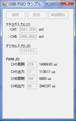 USB-FSIOのPWMは66.83us単位に行います。(初期値)